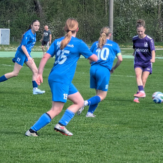 Bei ungewohnt warmen Temperaturen entwickelte sich von Beginn an ein ausgeglichenes Spiel mit Chancen auf beiden Seiten. In der 27. Minute durften die Duracher Mädels dann erstmals jubeln: Nach einem Eckball brachte Nina Knorr den Ball aus halbrechter Position hoch vor das Tor. Die gegnerische Torhüterin unterschätzte die Flugbahn, sodass der Ball hinter ihr im Netz landete. Mit dieser 1:0-Führung ging es auch in die Pause, in der beide Teams Kraft tanken und ihre Flüssigkeitsspeicher auffüllen konnten.